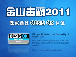OESISOK世界安全软件兼容认证公布了金山毒霸获得认证的消息,金山毒霸成为国内首家Certified正式认证的安全软件厂商